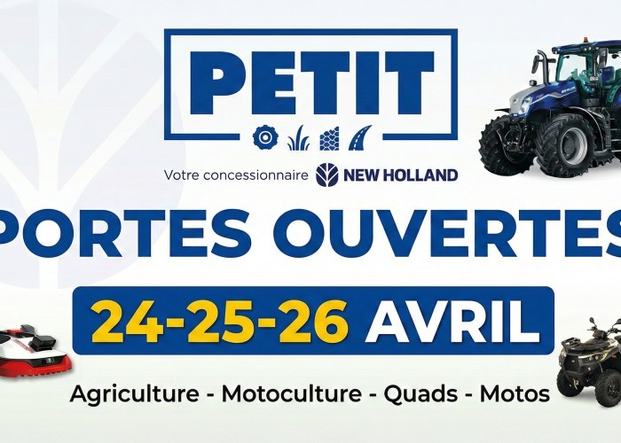 Du 24 au 26 avril, votre concessionnaire exclusif New Holland, SA PETIT, a le plaisir de vous convier à ses grandes journées Portes Ouvertes à Orchamps-Vennes.